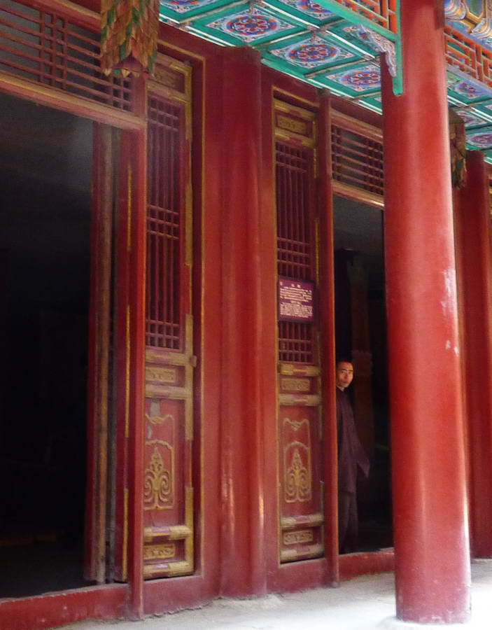 如果在出发前上网搜索有关承德的介绍,就会有所心里准备。我指的是当我们刚进班禅行宫,在某个状如佛殿的房间,听得几个导游对游客说,里面有“西藏师傅”在传法。我好奇地走过去,见一群男女游客双手合十面朝一个穿着仿藏式上装的男子,而那男子先是用汉语说些菩萨保佑升官发财之类的话,然后给每人一盏蜡烛灯,并给每人念了声“扎西德勒”,藏语发音很蹩脚。